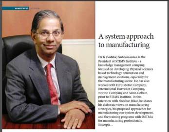 Interview of Dr. Subramanian published in the Efficient Manufacturing Magazine