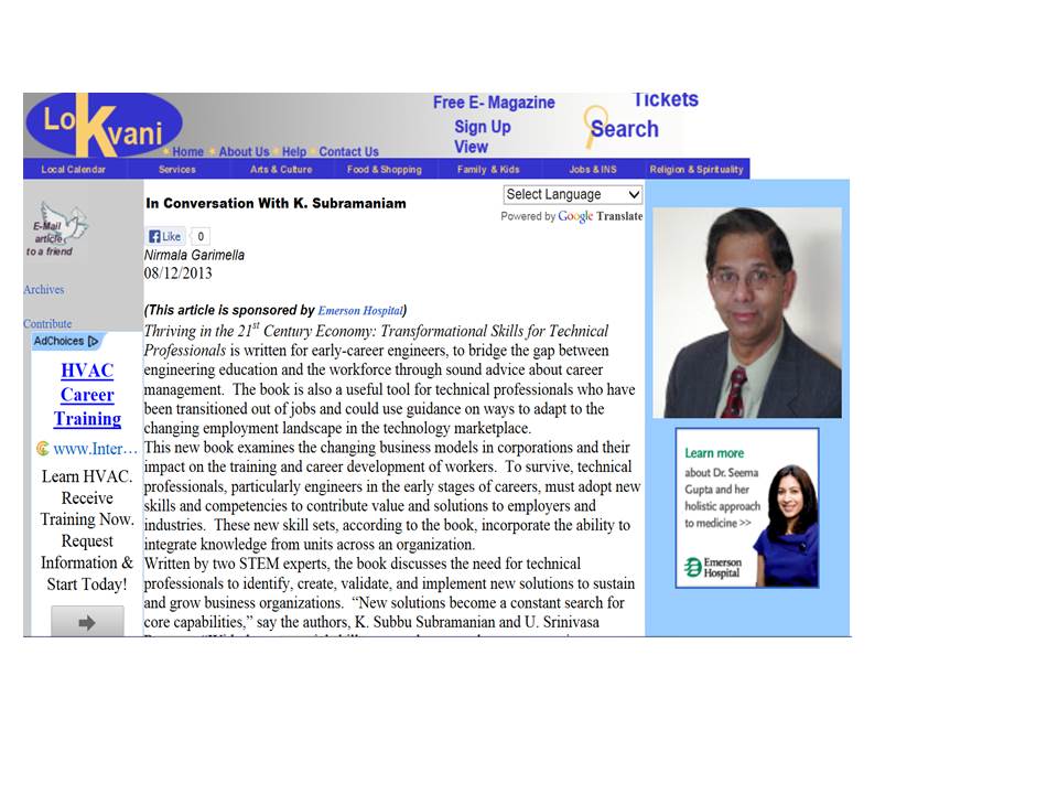 The book is available at Amazon: http://www.amazon.com/Thriving-Transformational-Technical-Professionals-Managers/dp/0791860167/ref=sr_1_1?s=books&ie=UTF8&qid=1375275381&sr=1-1&keywords=transformational+skills+subramanian+asme+press