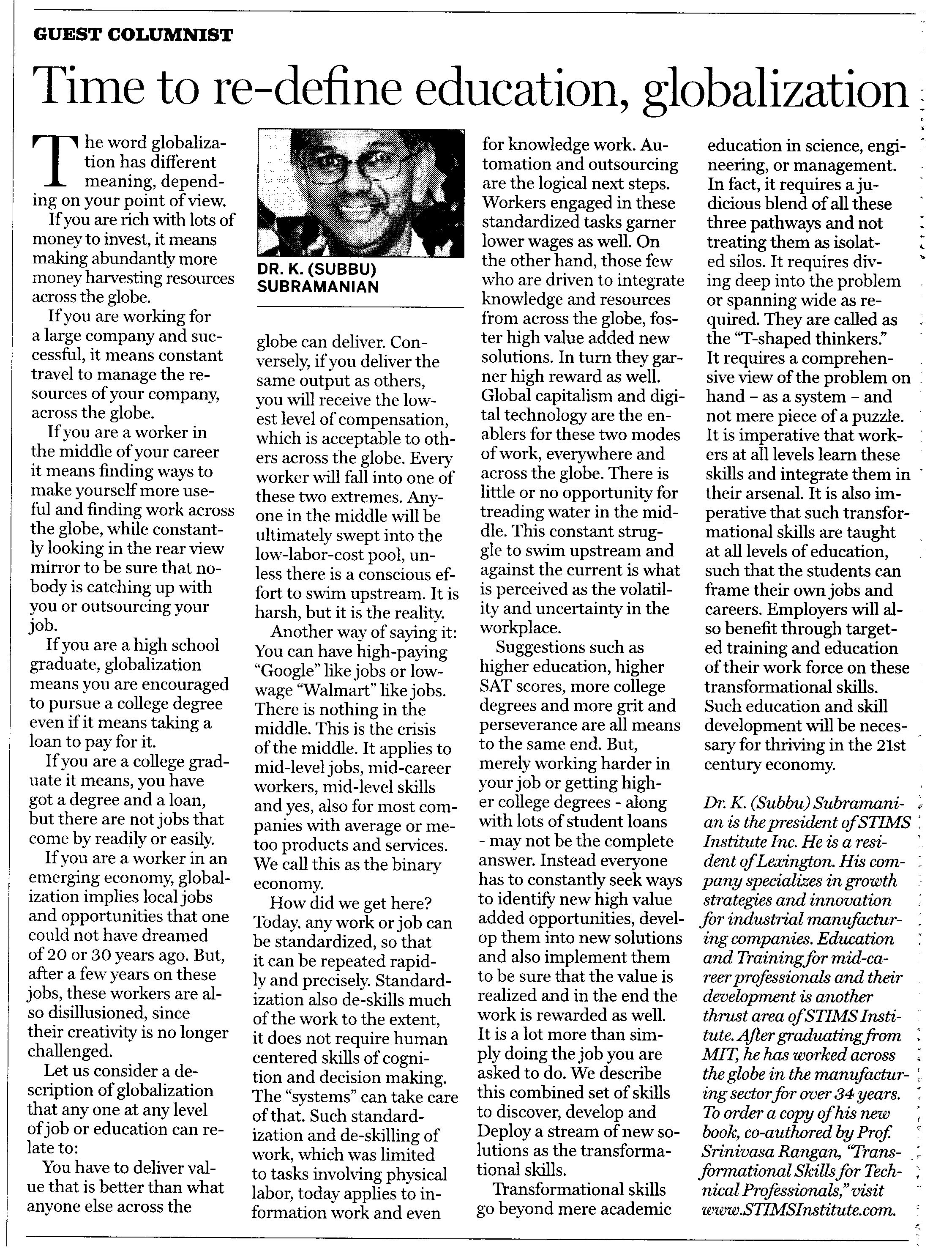 To quote one of our students in an M.B.A. course at Southern New Hampshire university: “This is my final class of my MS program at SNHU. Prof. Subramanian is the one professor of them all that has pushed my critical thinking to the limit! He makes us THINK!!!!!!!!! I have been in management for approx 15 years and it’s like he turned on a switch in my mind that makes me look at what I do and how I do it, in a whole different light! I am so grateful that I got to meet him and be a mental sponge around him for 10 weeks!”