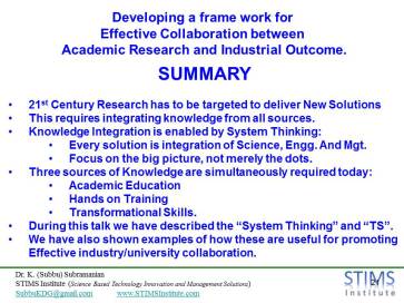 Developing a frame work for Effective Collaboration between Academic Research and Industrial Outcome.