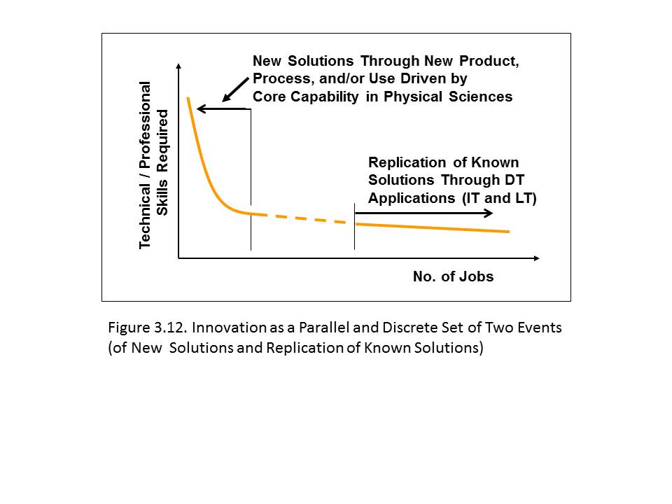 The professional workers can be divided into two modes with distinct difference in their skills as illustrated in another manner as shown in Figure 3.9.We can call this as the Binary Economy. https://stimsinstitute.com/2018/11/08/it-is-the-binary-economy-stupid/ In this binary economy the New Solutions and Replication Solutions are two independent clusters, business models or operational entities.