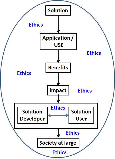 While ethics is often thought of as the impact of the solution on the society at large, such focus will be like attempting to lock the cattle inside after the barn door has been left open for a while! In many respects this might be the ignorance as it pertains to ethics and its management. In fact, ethics must be taken into account at every stage – from solution development, testing and USE or deployment – keeping in mind the impact to the developer, user and the society at large. This emphasis on benefit at large (which in turn also leads to the benefit to the self) may be described as the Emotional Intelligence for innovation. For details: https://stimsinstitute.com/2015/01/03/670/
